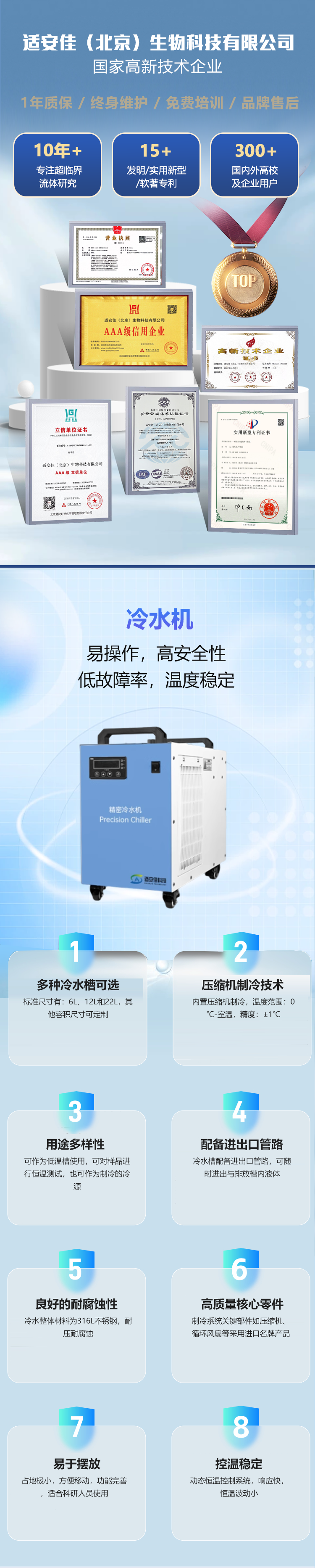 本机是通过压缩机进行制冷, 再与水进行热交换, 使水的温度降低, 通过循环泵送出。同时使用温度控制器进行温度控制,具备恒温、冷却、循环的三种功能。也当作冷槽使用。